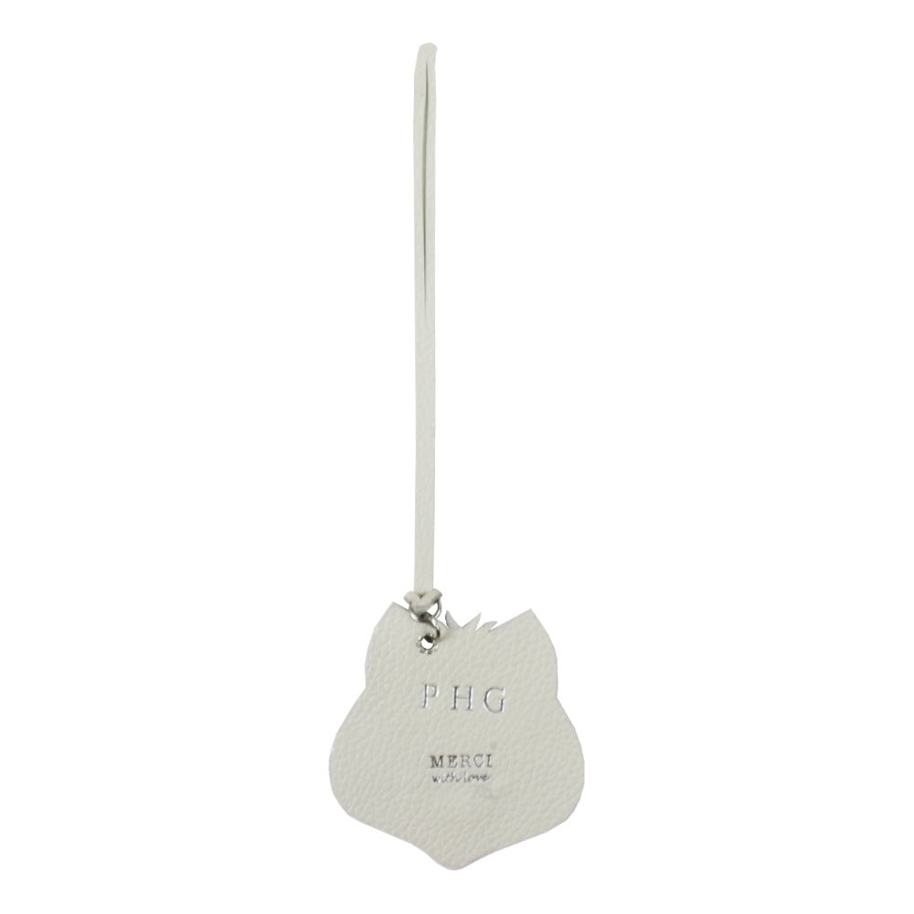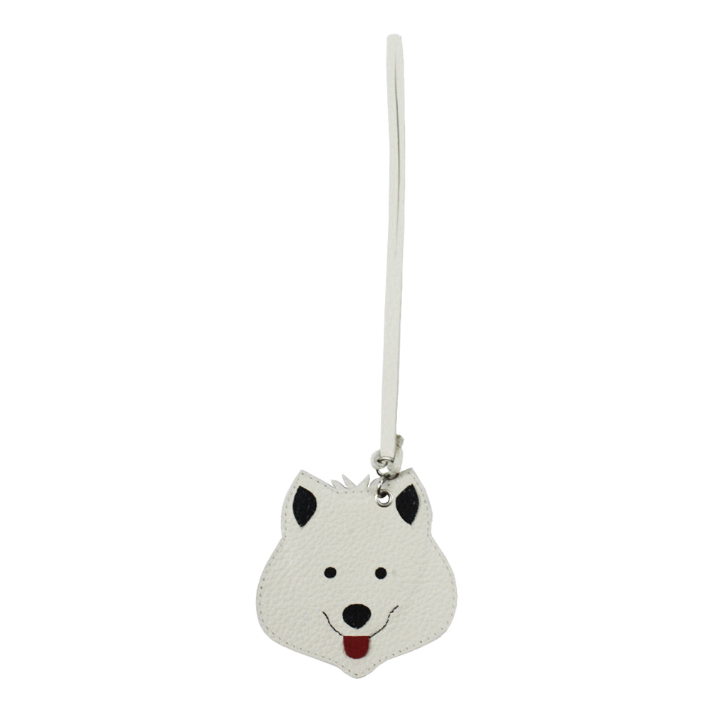 Marcador de mala infantil. Pode ser também identificador de lancheiras, mochilas. Todo feito em couro legítimo com aplicação de cachorrinho também em couro. Pode ser personalizado com até duas iniciais.